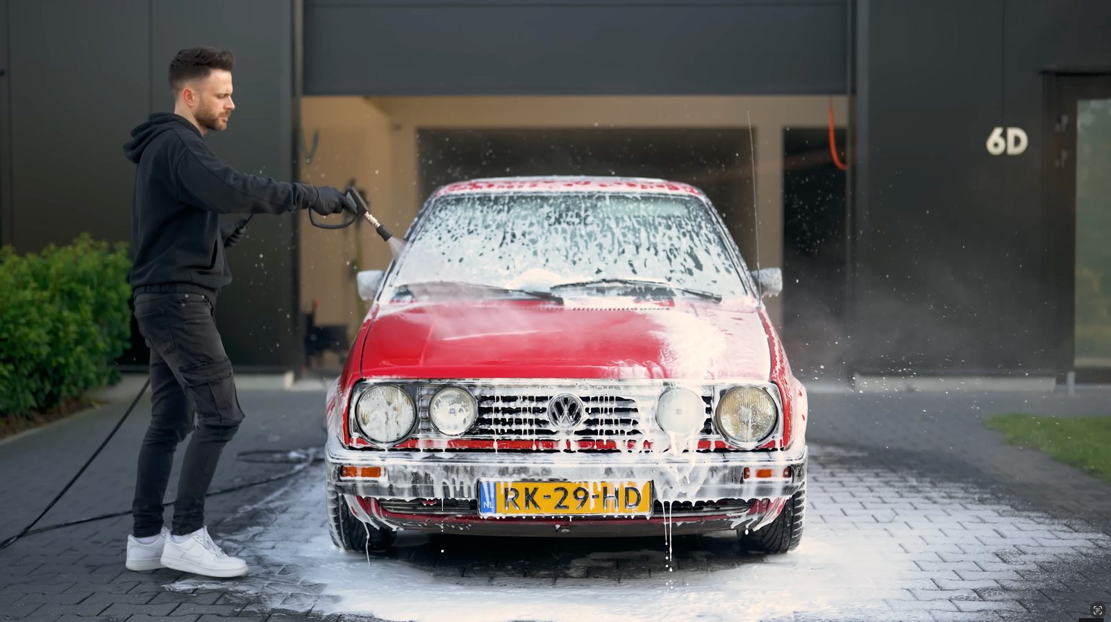 Le Procédé : Nous débutons par un prélavage à la **mousse active (Snow Foam)** qui emprisonne les particules abrasives sans toucher la voiture. Après un rinçage minutieux, nous procédons au lavage manuel selon la technique des deux seaux. Les jantes sont nettoyées en profondeur, face externe comme interne. Le séchage est effectué à l'air pulsé et avec des microfibres ultra-douces pour garantir une finition sans aucune micro-rayure.